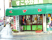 ABOUT すこやか薬局について 沿革 昭和59年7月 具志川市字喜屋武110番地にて宮里薬局を個人創業 昭和60年5月 具志川市字宮里262-18に「すこやか薬局具志川店」を開局 昭和60年12月 有限会社薬正堂を設立し、法人組織に変更 本店所在地を具志川市字喜屋武110番地に置く 昭和63年7月 沖縄市泡瀬4-38-19に「すこやか薬局泡瀬店」を開局 平成4年3月 宮里薬局を都合により閉局 平成4年5月 沖縄市登川1-26-15に事務所を設置し、同所に本店移転 平成5年2月 宜野湾市野嵩1-10-11に「すこやか薬局野嵩店」を開局 平成6年9月 浦添市城間3-2-22に「すこやか薬局城間店」を開局 平成7年4月 島尻郡大里村字稲嶺2023-1に「すこやか薬局大里店」を開局 平成7年10月 那覇市国場1161-7に「すこやか薬局与儀店」を開局 平成10年8月 浦添市宮城4-6-1に「すこやか薬局宮城店」を開局 平成10年12月 中頭郡北谷町上勢頭629-2に「すこやか薬局北谷店」を開局 平成11年5月 具志川市赤道10-15に「すこやか中部店」を開局 平成11年12月 中頭郡浦添市牧港4-2-17に「すこやか薬局牧港店」を開局 平成12年6月 具志川市みどり町4-19-2に「すこやか薬局みどり町店」を開局 平成13年1月 沖縄市南桃原3-36-11に「すこやか薬局ももやま店」を開局 平成14年7月 沖縄初のドライブスルー処方せん調剤を「すこやか薬局北谷店」で開始 平成15年2月 宜野湾市普天間1-3-6に「すこやか薬局普天間店」を開局 平成15年7月 沖縄市知花6-25-11 1Fに「すこやか薬局中頭店」を開局 平成15年12月 「すこやか薬局中部店」を閉局 平成15年12月 那覇市小禄626-2に「すこやか薬局小禄店」を開局 平成16年3月 「すこやか薬局城間店」を閉局 平成16年4月 本店所在地を沖縄市知花6-25-12へ登記変更 平成16年6月 「すこやか薬局与儀店」を那覇市国場707番地パラシオン国場1階へ移転 平成17年2月 島尻郡大里村仲間1136-3に「ケアプランサービスすこやか」を開所 平成17年2月 島尻郡大里村稲嶺1995 2階に「すこやかデイサービス」を開所 平成17年10月 宮古島市平良字西里782-1-2に「すこやか薬局西里店」を開局 平成18年1月 沖縄市美里1769の2番地「すこやか薬局美里店」を開局 平成18年1月 「すこやか薬局大里店」を南城市大里字稲嶺2025-2に移転 平成18年1月 「ケアプランサービスすこやか」を南城市大里字稲嶺2025-2に移転 平成18年4月 島尻郡南風原字新川101-3に「すこやか薬局新川店」を開局 平成18年4月 名護市大北1-2-36に「すこやか薬局大北店」を開局 平成18年11月 宜野湾市字宇地泊700番地に「すこやか薬局宇地泊店」を開局 平成19年2月 那覇市銘苅3丁目22番33号に「すこやか薬局おもろまち店」を開局 平成19年3月 「すこやかデイサービス」「ケアプランサービスすこやか」を閉所 平成19年10月 「有限会社 薬正堂」より「株式会社 薬正堂」へ商号変更 平成20年11月 クオール株式会社との資本・業務提携に向けての基本合意 平成21年2月 クオール株式会社と資本・業務提携 平成21年5月 中頭郡読谷村都屋167-2-1に「すこやか薬局よみたん店」を開局 平成21年8月 「すこやか薬局具志川店」をうるま市宮里261-16に移転 平成21年9月 中頭郡西原町字上原243-4に「すこやか薬局西原店」を開局 平成22年7月 那覇市与儀1-4-3 に「すこやか薬局沖赤店」を開局 平成23年2月 那覇市上間336-7-4 に「すこやか薬局上間店」を開局 平成23年7月 那覇市銘苅2-2-1 に「すこやか薬局新都心店」を開局 平成23年9月 「すこやか薬局上間店」を閉局 平成24年1月 那覇市宇栄原1-6-38に「すこやか薬局田原店」を開局 平成24年4月 有限会社ピー・ケイ・シー薬局 株式取得 平成24年6月 沖縄市泡瀬2-54-4に「すこやか薬局泡瀬東店」を開局 平成25年1月 那覇市久米2-10-1 シャトレブランシェ1階に「すこやか薬局久米店」を開局 平成25年3月 「すこやか薬局普天間店」を閉局 平成25年5月 沖縄市安慶田3丁目11の33番地に「すこやか薬局あげだ店」を開局 平成26年5月 中頭郡北谷町字伊平271番地に「介護付き高齢者住宅 すこやかの森ヴィラ北谷」を開所 平成26年6月 中頭郡北谷町字伊平271番地に「ヒーリングフォレスト シュロ」を開業 平成26年8月 中頭郡北谷町字伊平250番地に「すこやか薬局伊平店」を開局 平成26年11月 有限会社すみれ薬局 株式取得 平成26年12月 うるま市喜屋武546-1に「すこやか薬局喜屋武店」を開局 平成27年5月 那覇市松島2-1-14 NFレジデンス松島2階に「すこやか薬局松島店」を開局 平成28年3月 「すこやか薬局あげだ店」を閉局 平成28年4月 中頭郡北中城村字比嘉494-1に「すこやか薬局ライカム店」を開局 平成28年7月 沖縄市知花6-25-12から沖縄市登川の「すこやかホールディングス本社ビル」へ本社移転 平成28年10月 沖縄市字登川495-1に「すこやか薬局登川店」を開局 平成28年12月 うるま市与勝南風原3577-1に「すこやか薬局与勝店」を開局 島尻郡八重瀬町字外間157-1に「すこやか薬局外間店」を開局 平成29年8月 アワセ第一デイサービス 運営開始 平成30年4月 沖縄市安慶田3丁目11-33番地に「すこやか薬局あげだ店」を開局 那覇市宮城1丁目18-1に「すこやか薬局みやぐすく店」を開局 平成30年